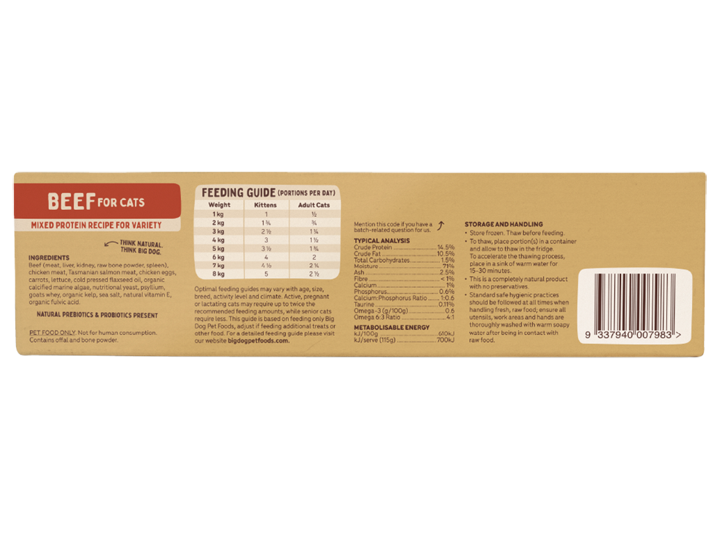 Big Dog is nutritionally complete and balanced in accordance with AAFCO guidelines for healthy growth in kittens and maintenance of health in adult cats.