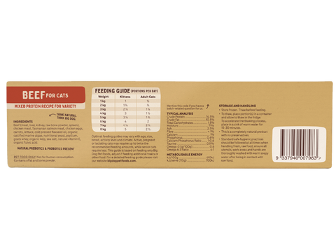 Your tiny carnivore will love Beef for Cats, a mixed protein recipe with the main protein source being beef. This recipe contains the benefit of lean muscle meat, vitamin and mineral-rich offal, calcium-rich raw bone powder as well as biologically appropriate amounts of vegetables, whole eggs and kelp, just to name a few.