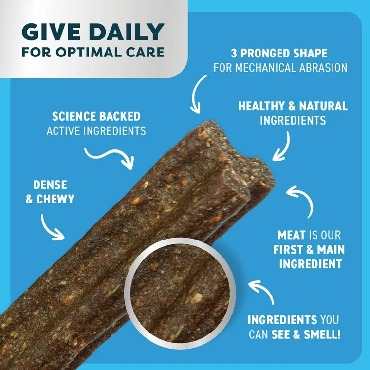 By feeding 1 stick daily, our dental sticks can help help fight plaque and tartar through mechanical abrasion and chemical action.